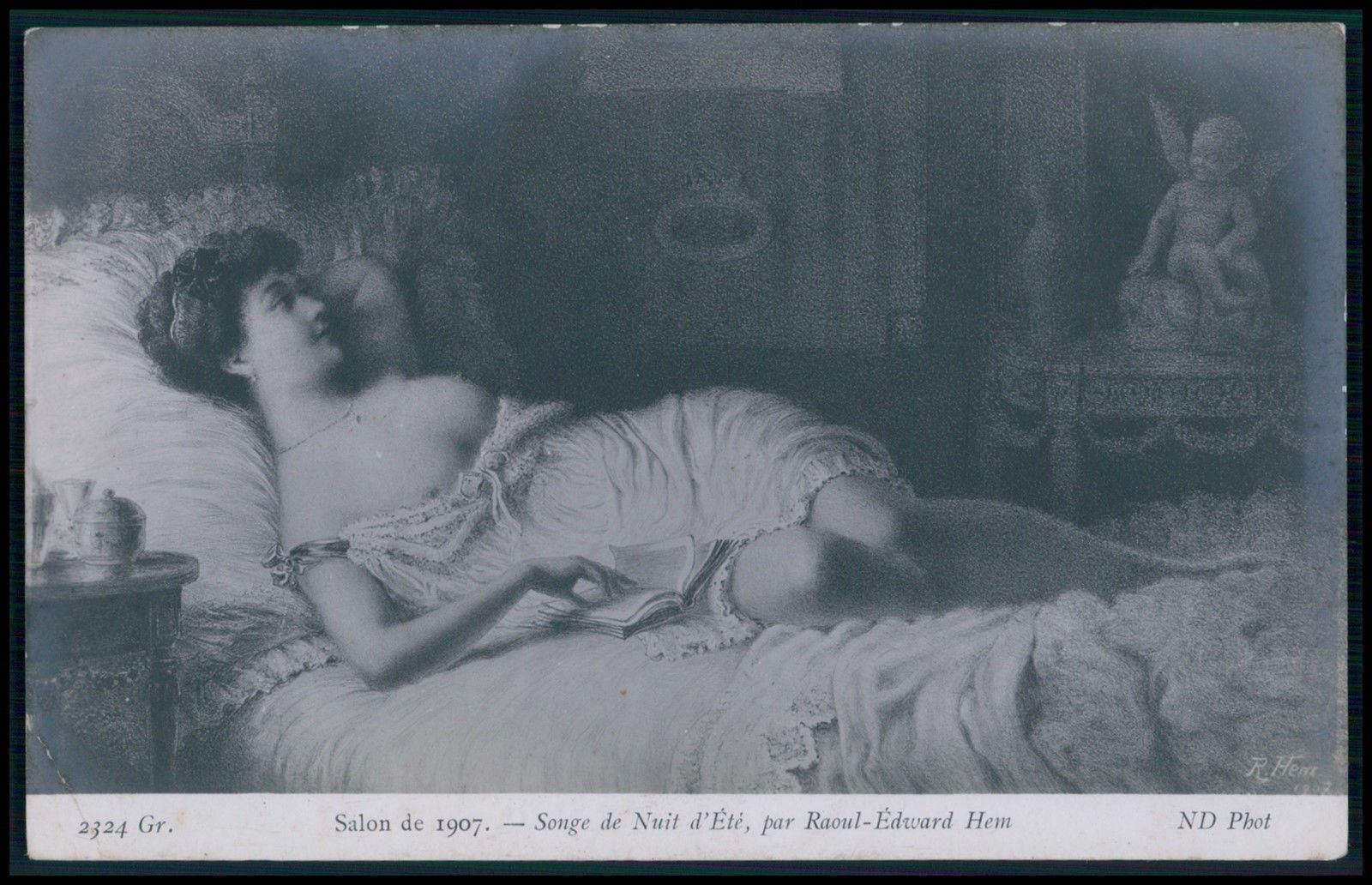 art Raoul-Edward Hem nude woman Summer night dream 1910s Salon de Paris postcard