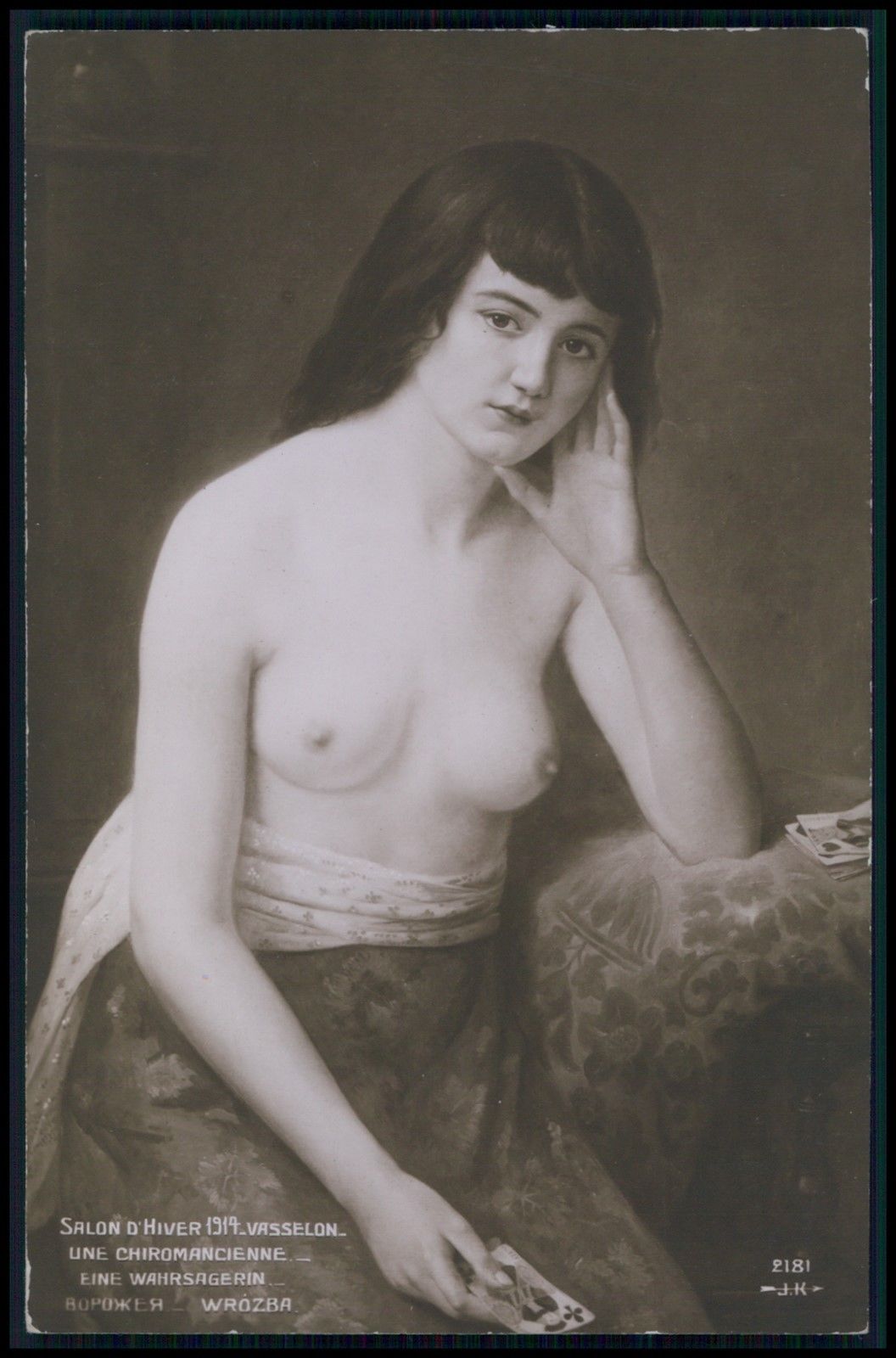 Title (ebay affiliate link): art Vasselon nude Fortune teller card reader woman 1910s Salon de Paris postcard