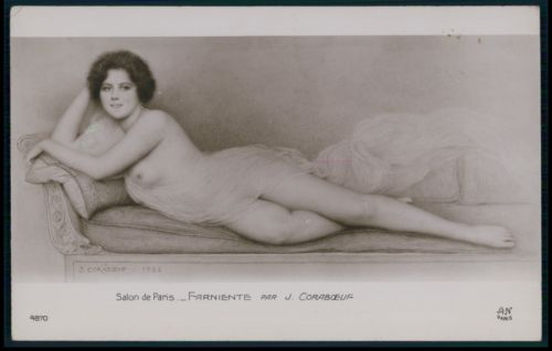 Title (ebay affiliate link): art Coraboeuf nude woman farniente original old 1910s Salon de Paris postcard