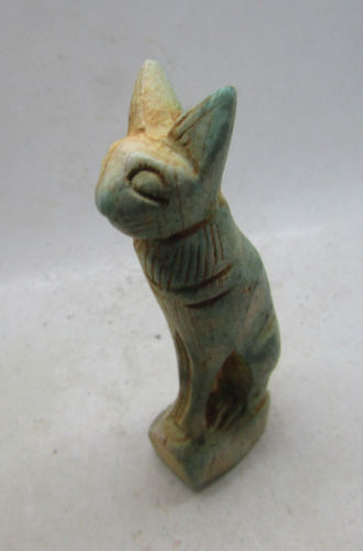 Title (ebay affiliate link): CIRCA 664-332 BC ANCIENT EGYPTIAN FAIENCE BASTET STATUETTE RARE