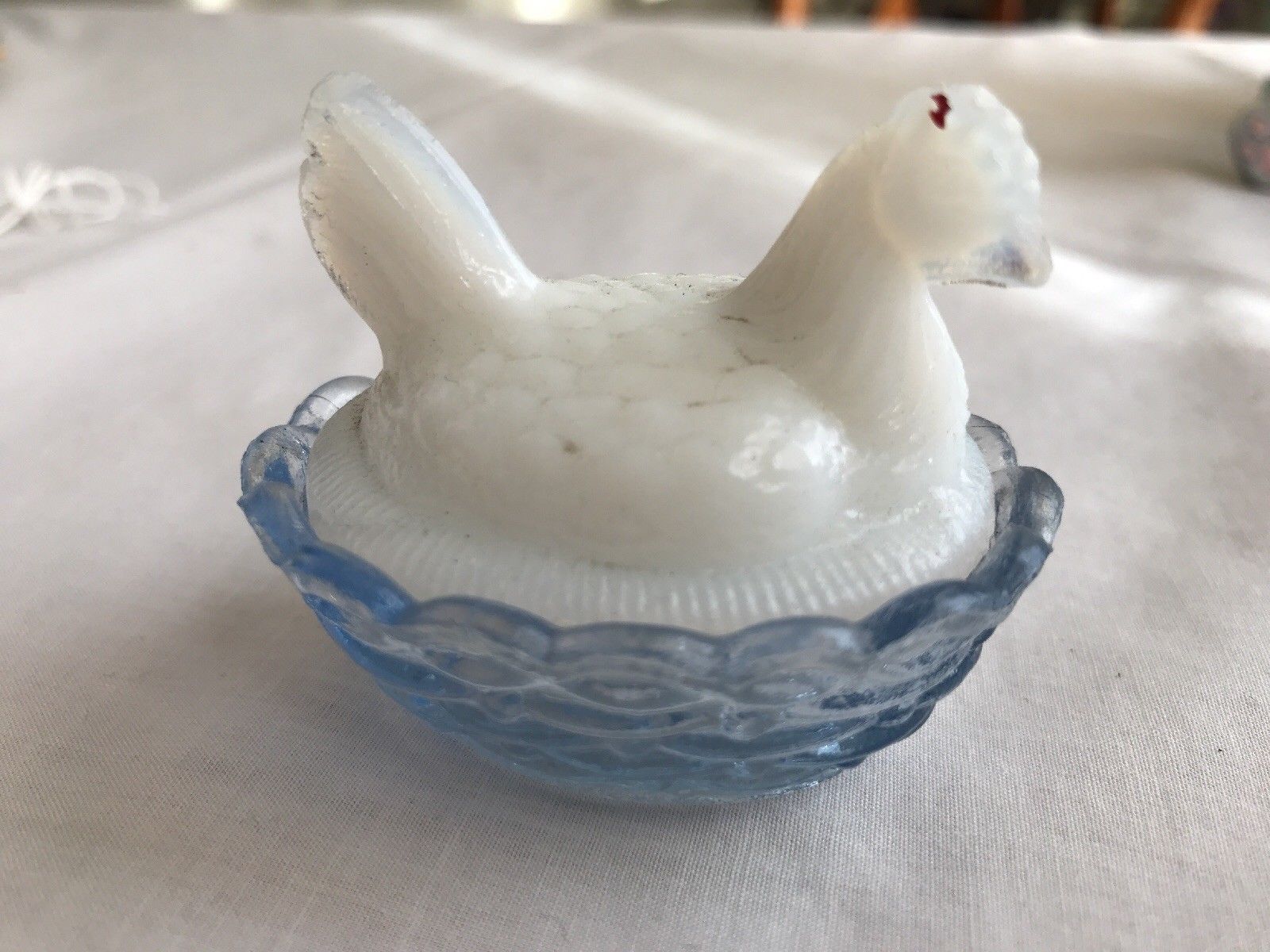 Vintage Whiteclear Milk Glass Hen In Nest Salt Dip