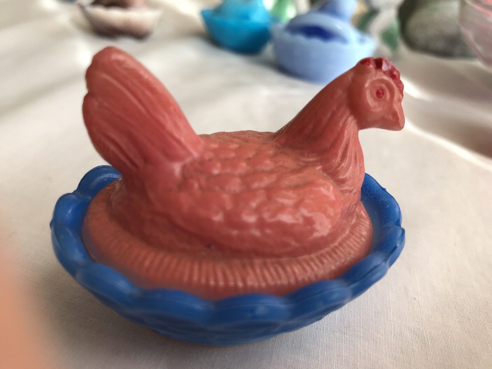 Vintage White/Red/Blue Milk Glass Hen In Nest Salt Dip