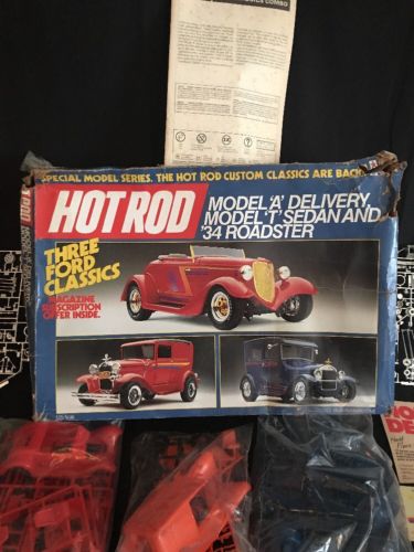 Title (ebay affiliate link): Hot Rod Model A Delivery Model T Sedan & 34 Roadster 1/25 Scale 3 Ford Classics