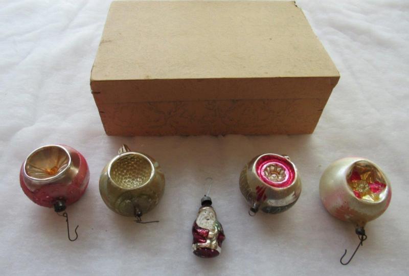 Title (ebay affiliate link): 5 pc. Vintage Glass Christmas Ornaments Lot Mercury Blown Santa & Box very old