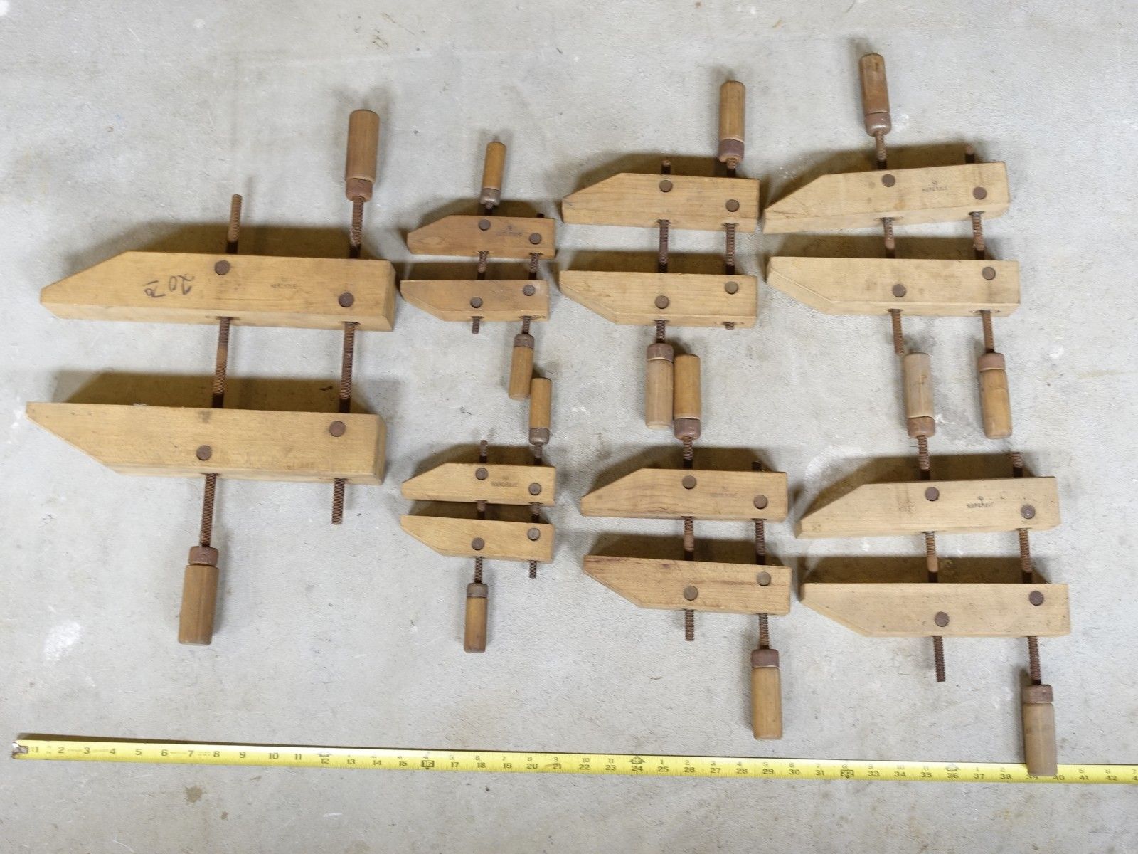 Title (ebay affiliate link): Set of 7 Vintage HARGRAVE Wood Hand Screw Clamps