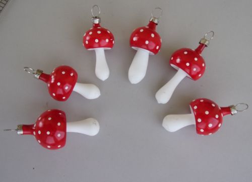 Title (ebay affiliate link): 6 VINTAGE Czechoslovakia BLOWN GLASS MUSHROOMS Christmas Ornaments