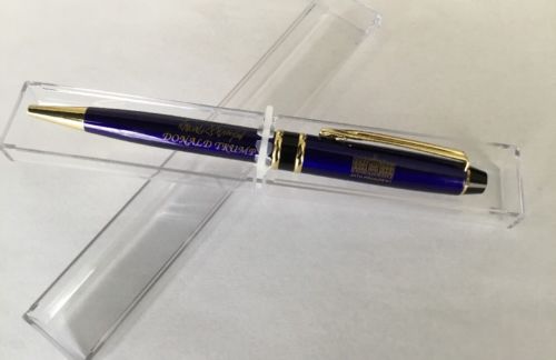 Title (ebay affiliate link): TRUMP White House Collectible Pen Signed 45th President Cobalt Blue & Clear Case