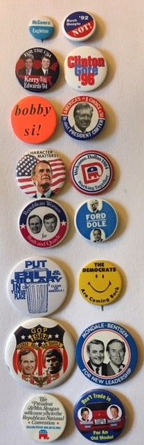 Title (ebay affiliate link): Variety of 16 Presidential Campaign Pin Buttons for the Oley Foundation