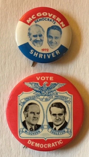 Title (ebay affiliate link): Two McGovern/Shriver and McGovern/Eagleton Campaign Pins for the Oley Foundation