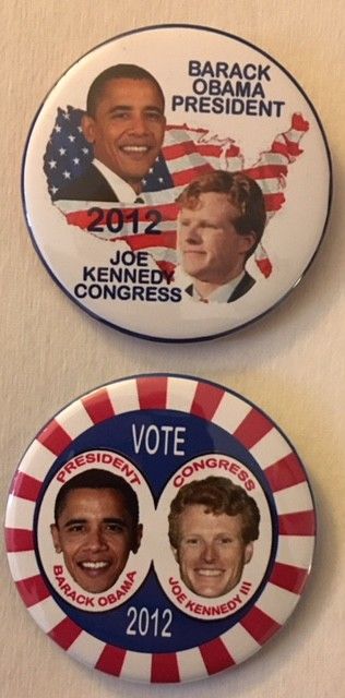 Title (ebay affiliate link): Two 2 1/4" Obama/Joe Kennedy for Congress Campaign Pins for the Oley Foundation