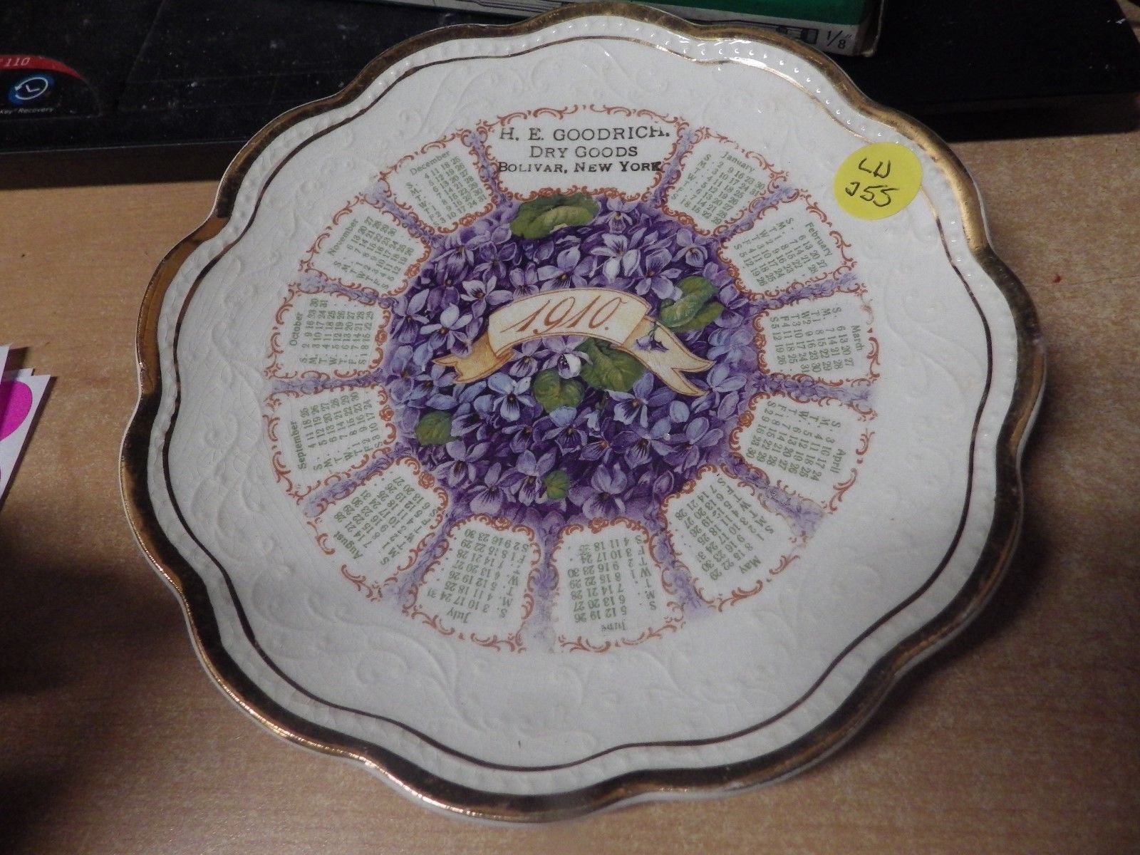 ANTIQUE ADVERTISING PORCELAIN CALENDAR PLATE GOODRICH DRY GOODS BOLIVAR NY 1910