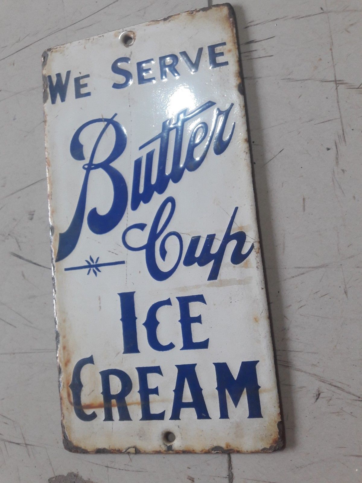 Butter Cup Ice Cream Porcelain sign measures 4" x 8" Inches