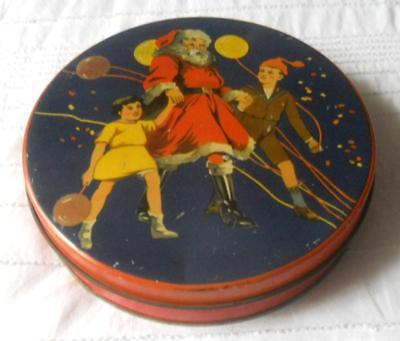 ANTIQUE VINTAGE C1930''S SANTA CHRISTMAS TIN SWEETS CANDY CONFECTIONARY