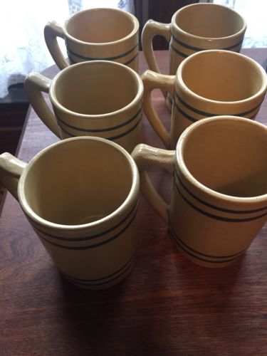 Title (ebay affiliate link): ANTIQUE 1920s MORTON POTTERY YELLOW WARE MUG Cobalt Stripes 100% BUCKEYE PURE