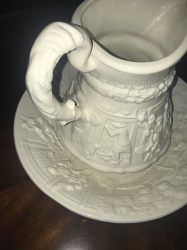 Antique 1800s White Ironstone Wash Bowl And Pitcher Set Washstand Victorian