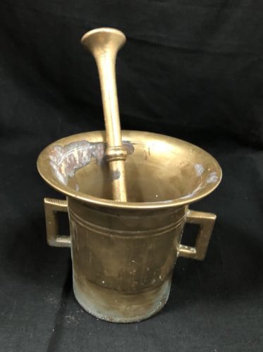 ANTIQUE BRASS BRONZE MORTAR & PESTLE APOTHECARY 5 POUNDS