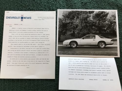 Title (ebay affiliate link): 1982 Camaro Z28E Export Announcement Photo And Letter Rare GM
