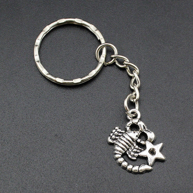 Scorpio Zodiac Keychain Silver Metal Keyring Handmade Vintage Gifts Collectibles