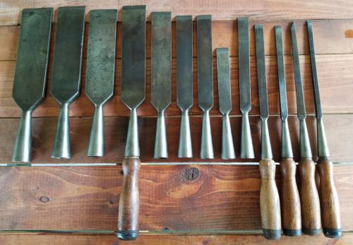 Title (ebay affiliate link): VINTAGE T.H. WITHERBY CHISELS - NICE SET OF 13 WOODWORKING TOOLS WOOD HANDLES
