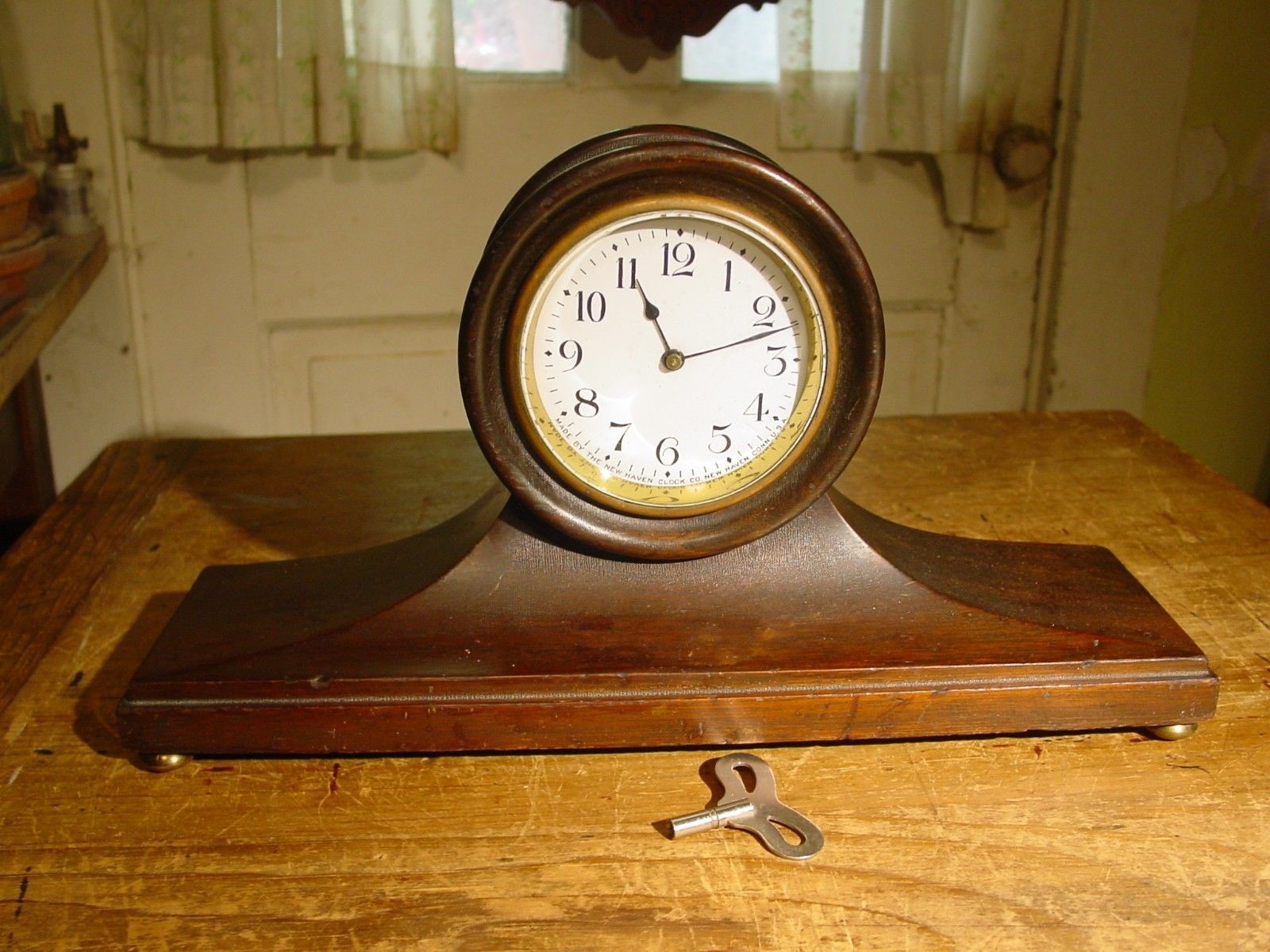 Title (ebay affiliate link): ANTIQUE RARE NEW HAVEN 1913 "QUINBY" MAHOGANY TAMBOUR SHELF CLOCK WORKING WELL