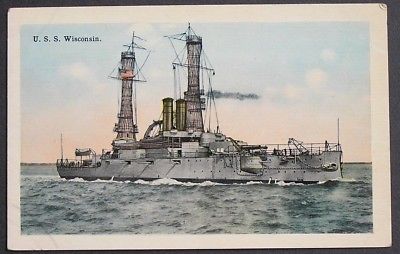 Title (ebay affiliate link): U.S.S. WISCONSIN Navy Battleship Military Ship ca 1915 postcard