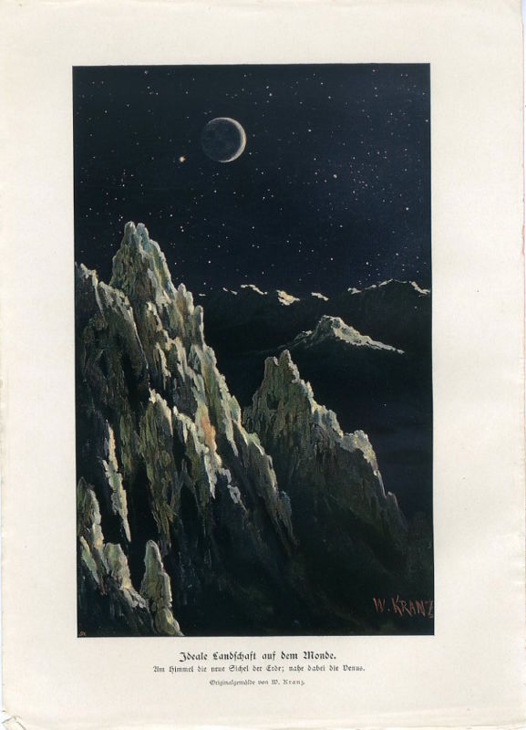 Title (ebay affiliate link): 1900s MOON PLANET LANDSCAPE EARTH PLANET ECLIPSE Antique Litho Print J.Plassmann