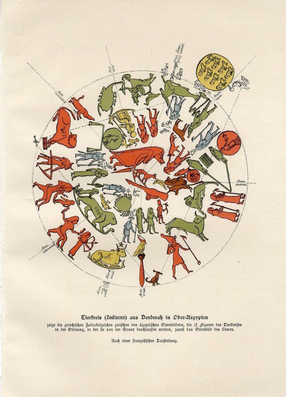 Title (ebay affiliate link): 1900s ZODIAC CIRCLE SIGNS ASTROLOGY in EGYPT Antique Litho Print J.Plassmann