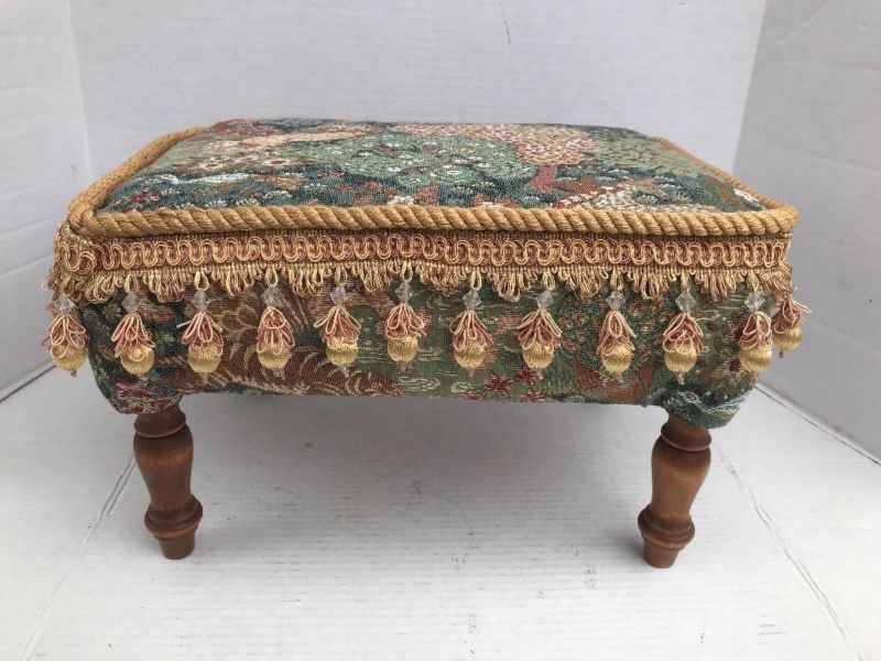 Title (ebay affiliate link): VINTAGE NEEDLEPOINT SQUARE FOOTSTOOL WITH WOOD LEGS