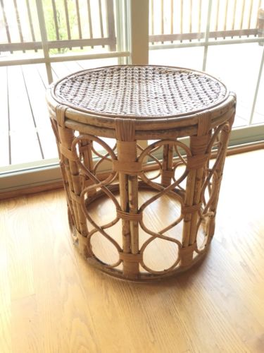 Title (ebay affiliate link): Mid Century Bent Rattan Bamboo Side Table Boho Tropical Tiki Decor Albani Style