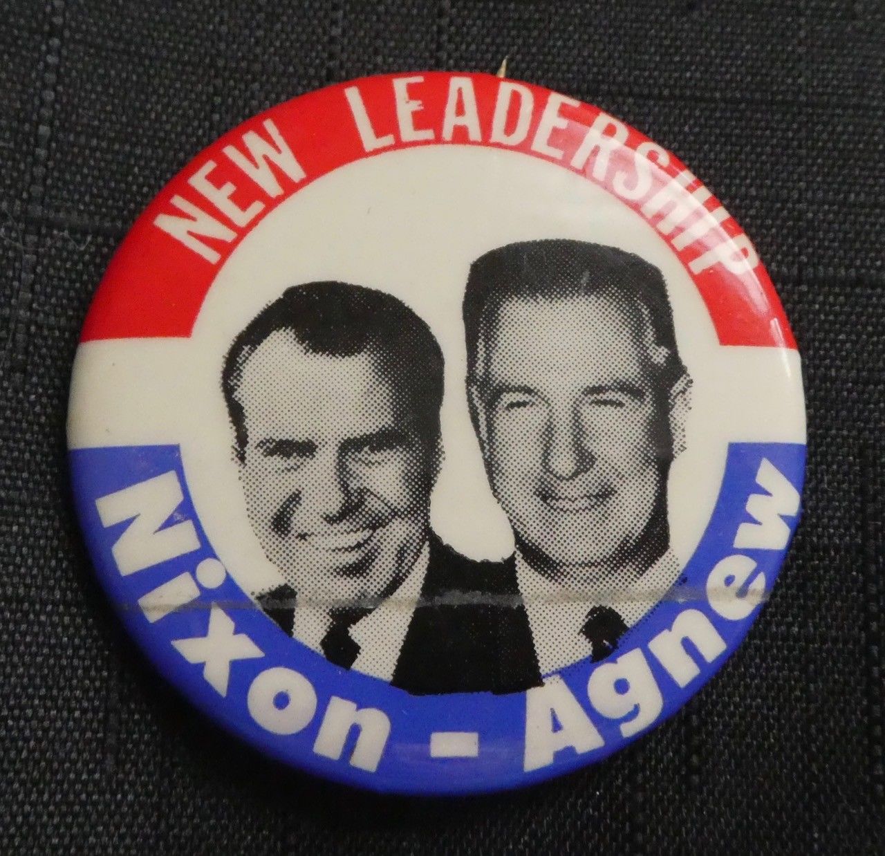 Title (ebay affiliate link): VINTAGE 1968 NIXON-AGNEW "NEW LEADERSHIP" RED, WHITE & BLUE CAMPAIGN BUTTON