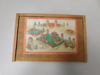 ANTIQUE D-R-G-M GERMAN WOOD BUILDING BLOCK SET PRE-WWII TOY, HOUSES TOWN
