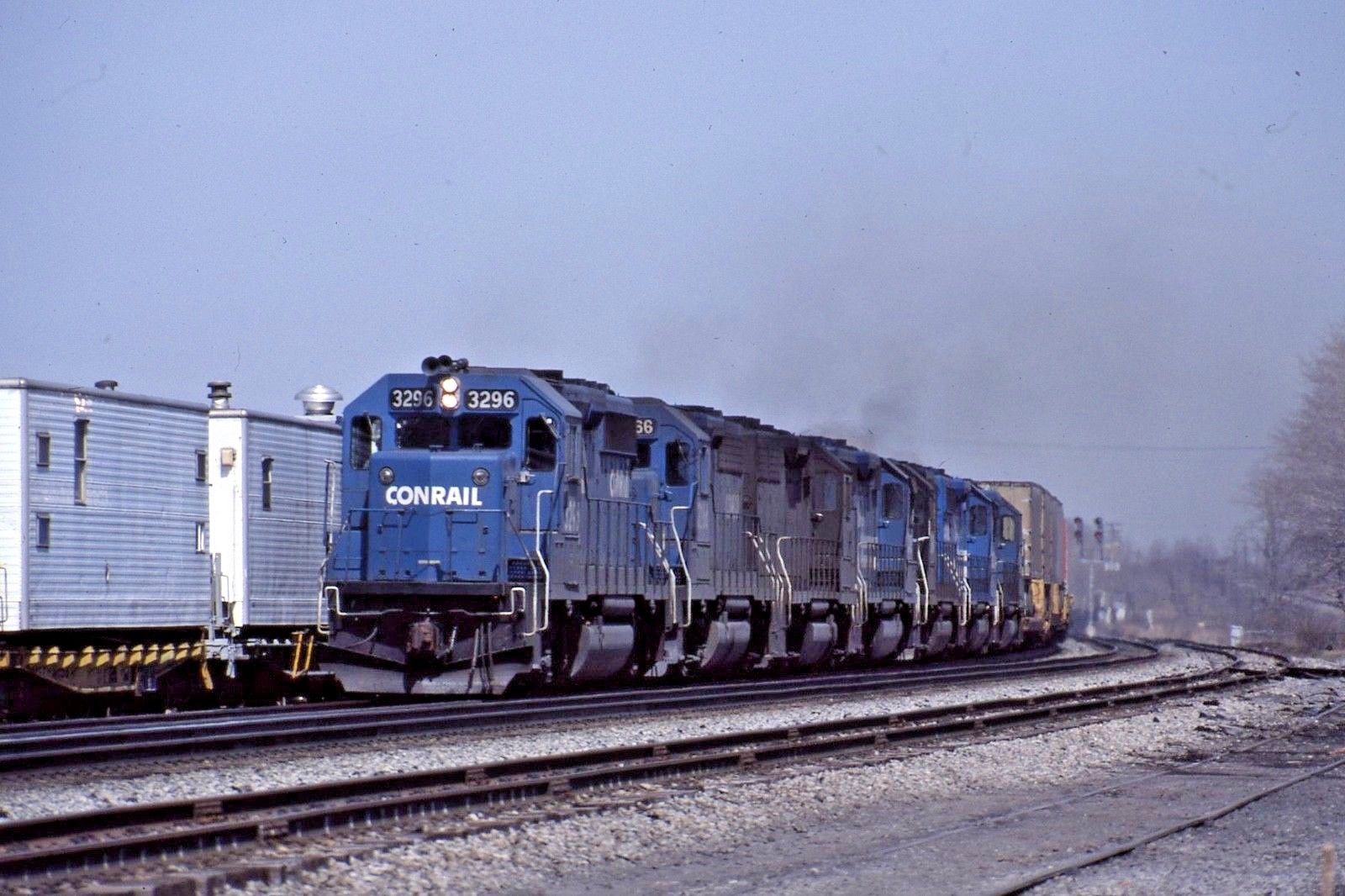 Title (ebay affiliate link): ORIGINAL KODACHROME CONRAIL ACTION WEST # 3296-3266-3201 SILVER CREEK 1983