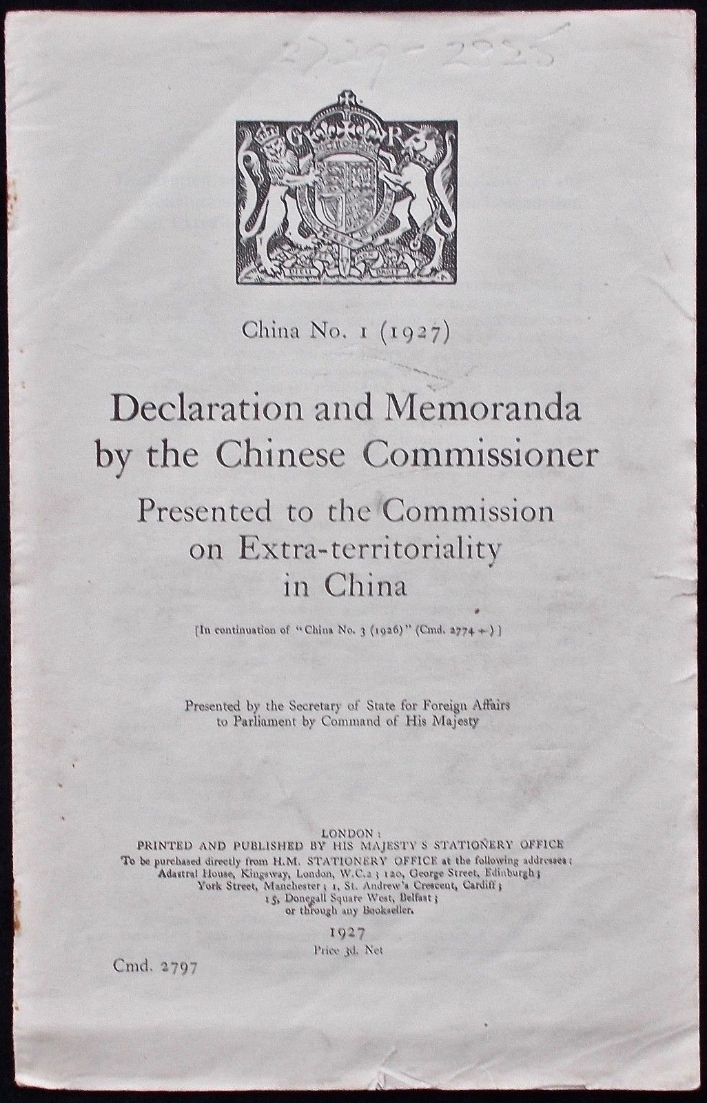 1927 CHINA CHINESE MEMORANDA TO THE 1926 COMMISSION ON EXTRA-TERRITORIALITY
