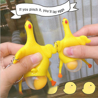 Title (ebay affiliate link): Yellow Laying Egg Hens Chicken Funny Relax Fidget Trick Toy KeyChain W/Ring #eq