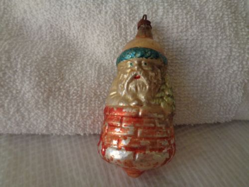 Vintage German Christmas Santa in Chimney Ornament Blown Glass
