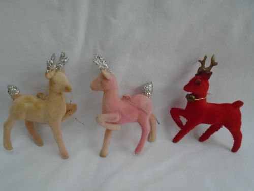 Title (ebay affiliate link): vintage lot of miniature Christmas tree flocked reindeer Japan ornaments