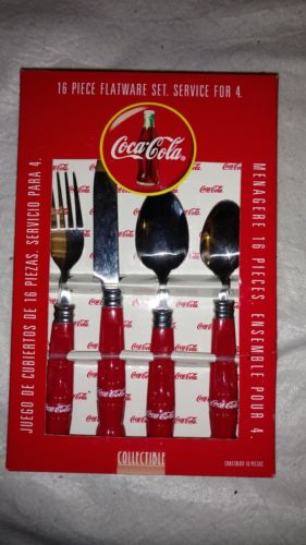 Title (ebay affiliate link): COCA-COLA Coke 16 PIECE FLATWARE SET SERVICE FOR 4 RARE NIB 1997