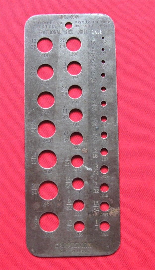 Title (ebay affiliate link): Old~Sears~CRAFTSMAN~Fractional Size Drill Gage~No 4049~Vintage~Machinist~TOOL