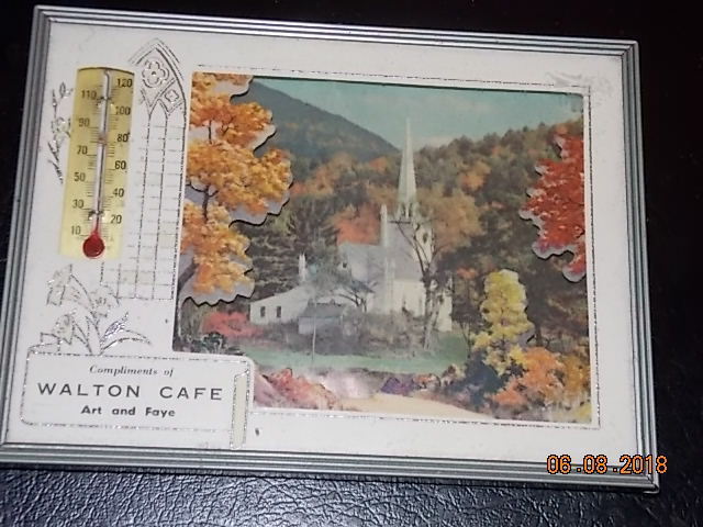 Title (ebay affiliate link): Vintage 3D Picture Thermometer Advertising WALTON CAFE Glass Front Calendar Back