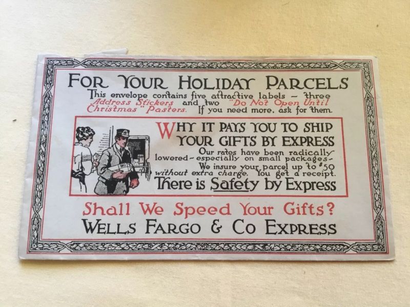 Title (ebay affiliate link): Vintage Wells Fargo & Co Advertising Christmas Labels Stickers Parcels Envelope