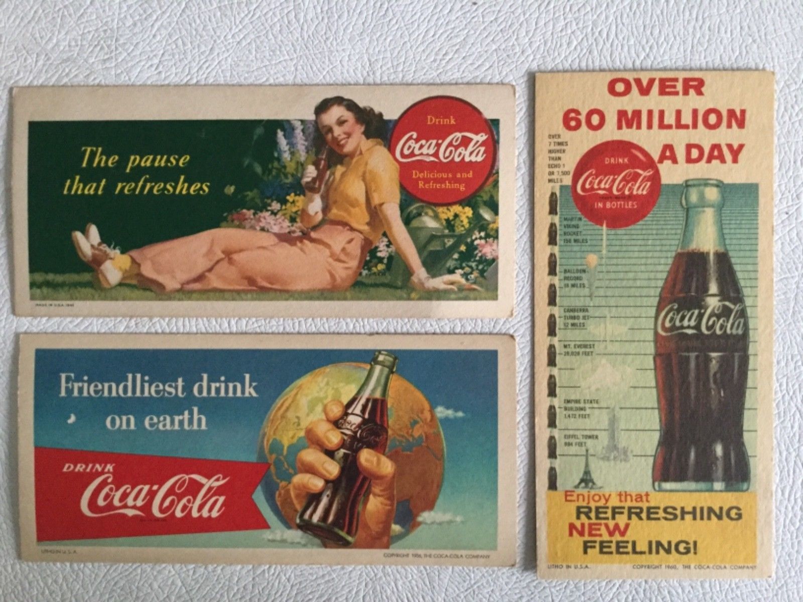 Title (ebay affiliate link): 3 Vintage Drink Coca Cola Ink Blotters Unused, 1941, 1956, 1960
