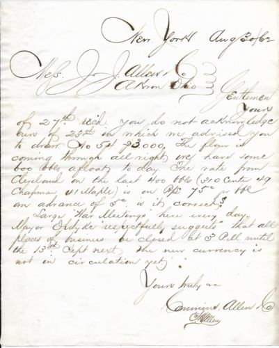 Union Business Letter From Commins & Allen, NY to JJ Allen, Akron, OH 8/30/62