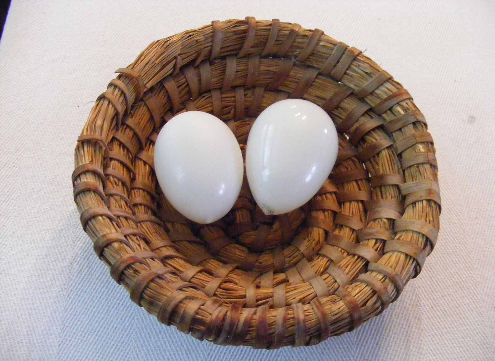 Title (ebay affiliate link): Antique Rye Straw Woven Basket with 2 Hand Blown Milk Glass Eggs