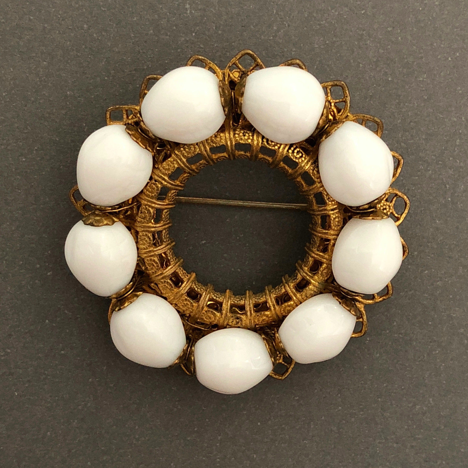 Title (ebay affiliate link): Miriam Milk Glass - Vintage Miriam Haskell Milk Glass Bead Circle Pin/ Brooch