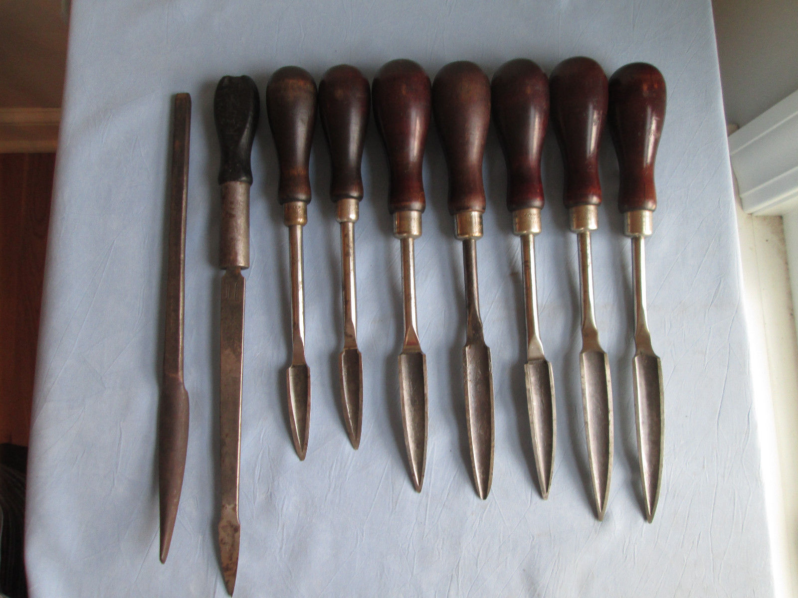 Lot of Nine Vintage Bearing Scrapers Goodell-Pratt & Buffum, Etc. Nice No Reserv