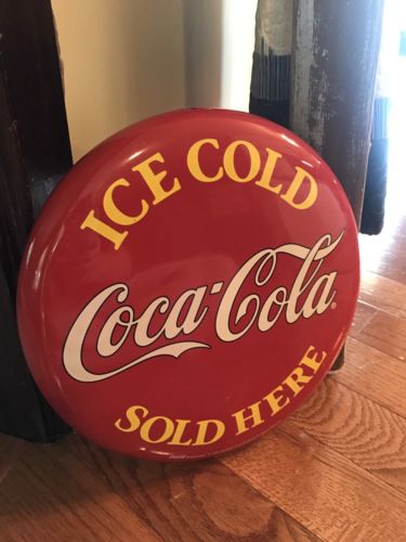 Title (ebay affiliate link): Vintage Coca-Cola Metal Advertising Button Sign Very Nice 12"