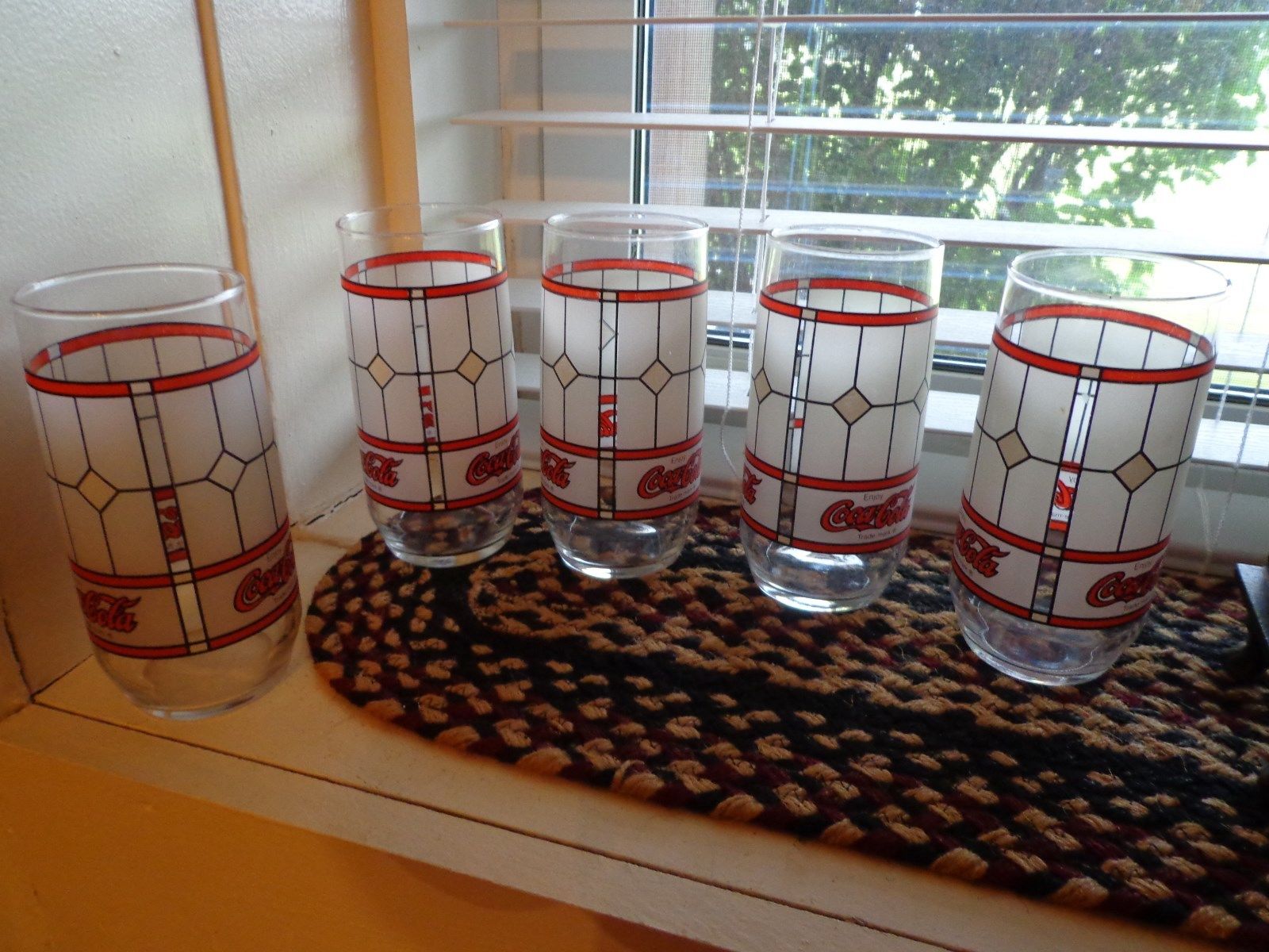 Title (ebay affiliate link): Lot-of-5-Vintage-Glass-Drink-Coca-Cola-12-oz-Glasses-VTG