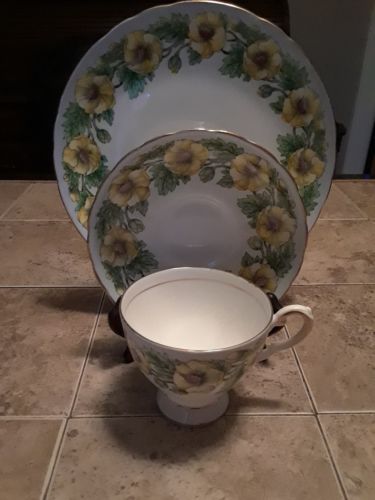 Tuscan Teacup and Saucer Trio Blue and Yellow Floral Handpainted