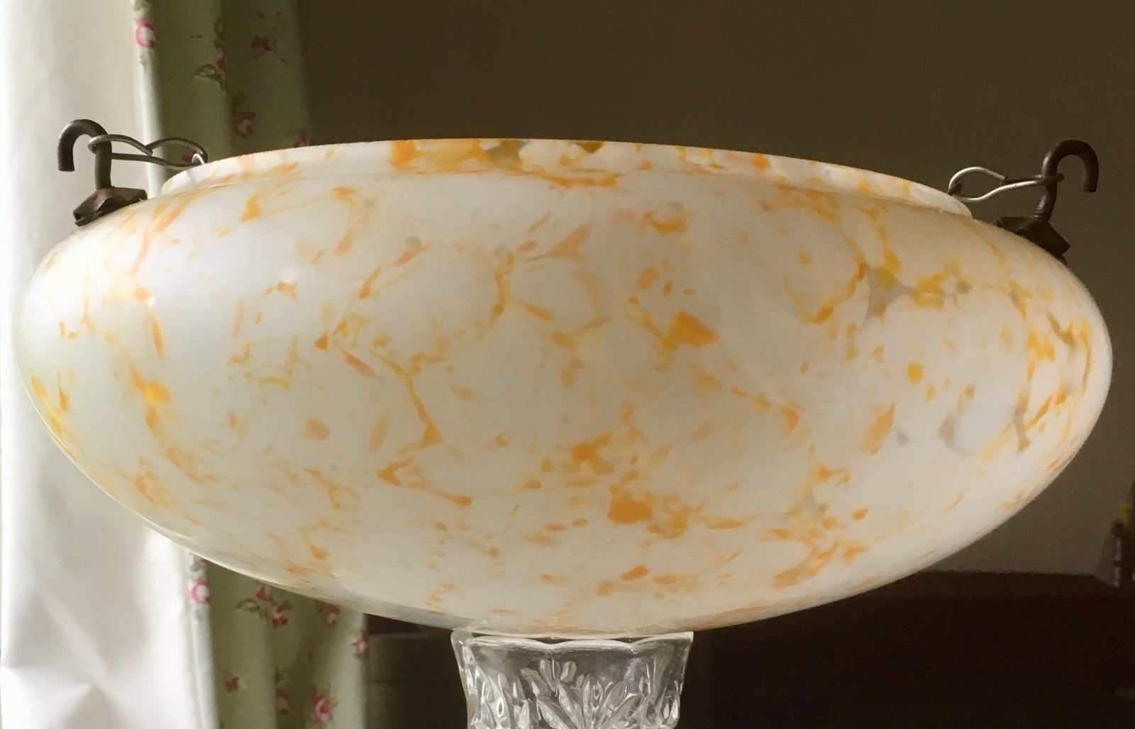 Vintage 1930s white and yellow glass flycatcher lampshade with original box