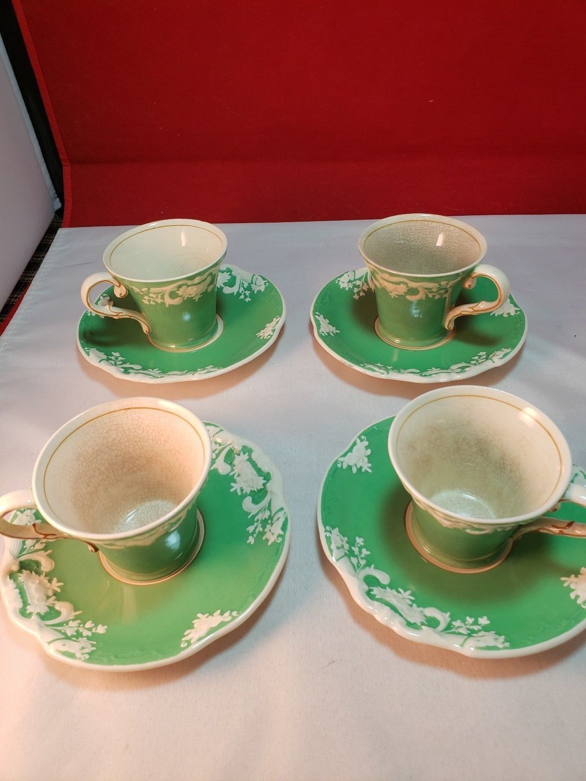 4 Vintage George Jones & Sons England Marlborough Crescent Cup & Saucer Sets